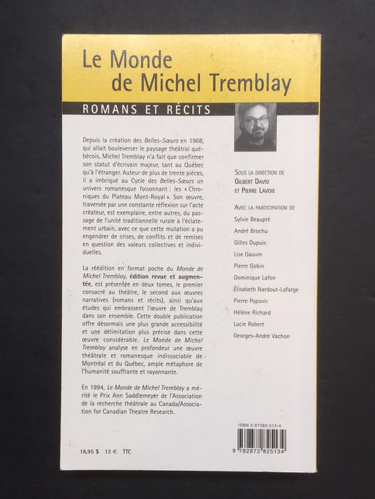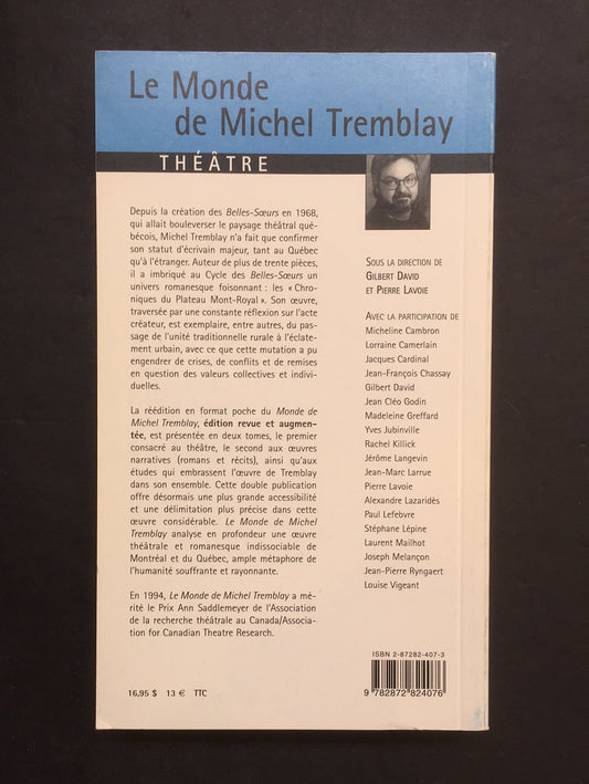 LE MONDE DE MICHEL TREMBLAY - TOME 01 THÉÂTRE