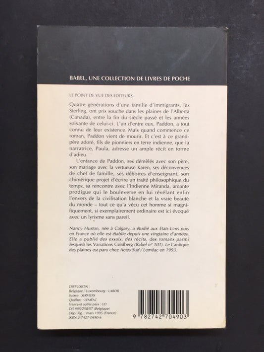Distributeur :Nancy HustonPrix habituel $7.00 CADPrix habituelPrix unitaire parPrix soldé $7.00 CAD -