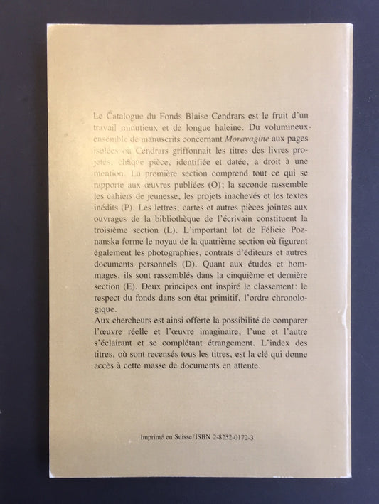 CAHIERS BLAISE CENDRARS N°1 - CATALOGUE DU FONDS BLAISE CENDRARS