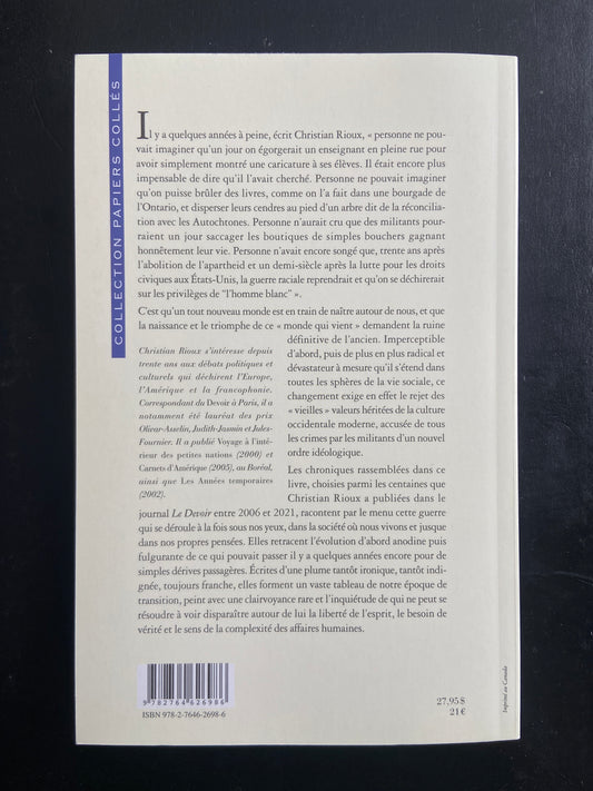 CHRONIQUES DU MONDE QUI VIENT : LA NOUVELLE GUERRE CULTURELLEDistributeur :Christian RiouxPrix habituel $13.00 CADPrix habituelPrix unitaire par-