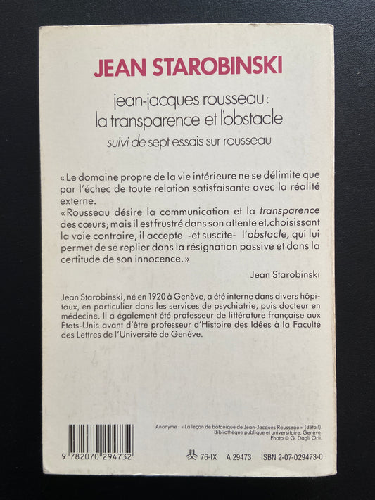 JEAN-JACQUES ROUSSEAU : LA TRANSPARENCE ET L'OBSTACLE