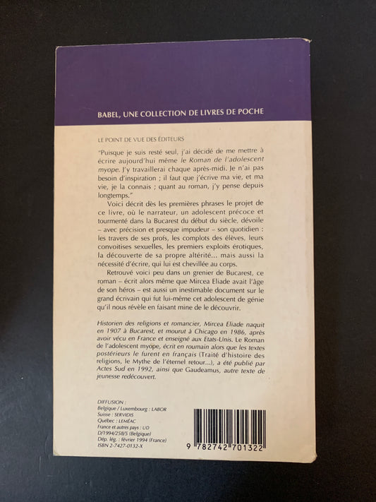 LE ROMAN DE L'ADOLESCENT MYOPE
