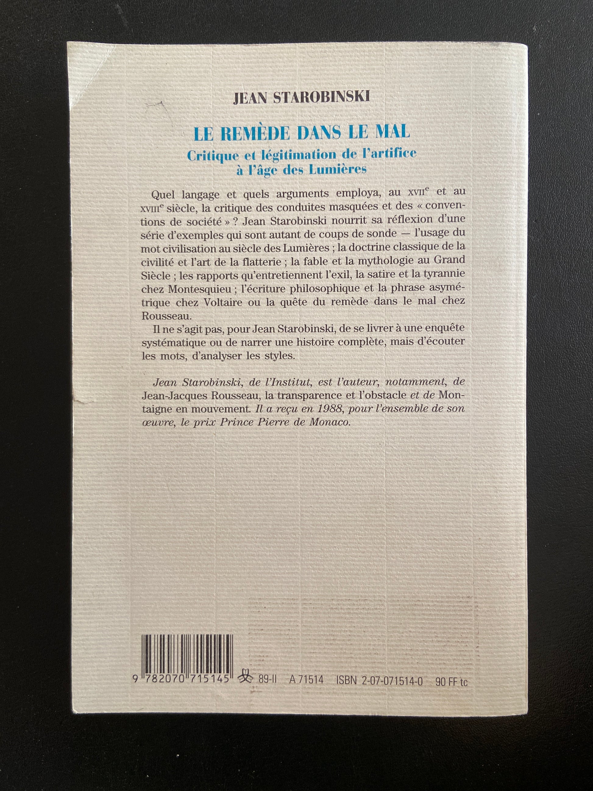LE REMÈDE DANS LE MAL - CRITIQUE ET LÉGITIMATION DE L'ARTIFICE À L'ÂGE DES LUMIÈRES
